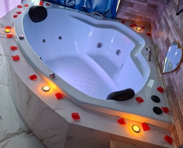Suíte exclusiva para casal com banheira de hidromassagem, ideal para momentos especiais.